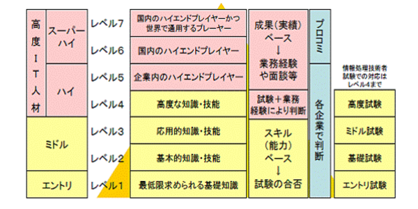 まず、試験制度では、以下のように共通キャリア・スキルフレームを7段階に分類しています。