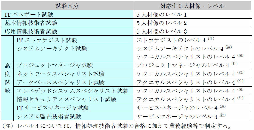 つまり、LV1〜3の各試験はすべての人材像をカバーする必要があります。